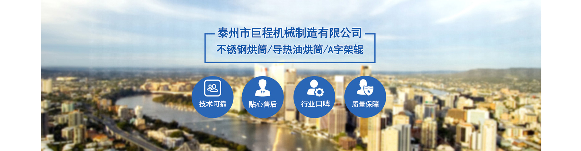 泰州市巨程機(jī)械制造有限公司 泰州市巨程機(jī)械制造有限公司泰州市巨程機(jī)械制造有限公司是一個(gè)專業(yè)生產(chǎn)不銹鋼烘筒、導(dǎo)熱油烘筒、雙層冷水輥、A字架輥、染整設(shè)備等產(chǎn)品的機(jī)械公司。我公司注重產(chǎn)品質(zhì)量,講求企業(yè)信譽(yù)。我公司重點(diǎn)在于內(nèi)部管理,努力提高產(chǎn)品質(zhì)量,強(qiáng)化全體員工的服務(wù)意識,形成了一套我廠的用戶定期回訪制度,積極搜集廣大用戶在使用我廠設(shè)備過程中反饋回的各種信息,有針對性的組織人員進(jìn)行專項(xiàng)攻關(guān)
